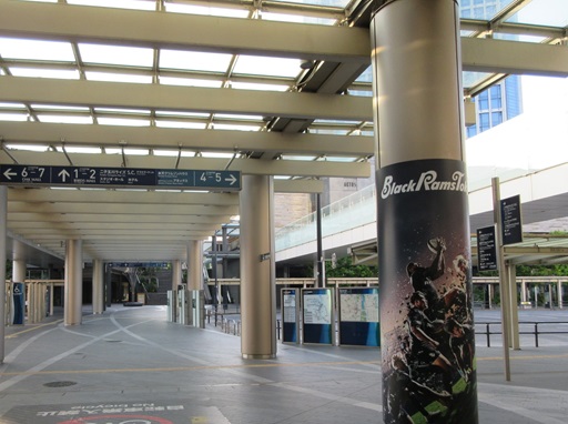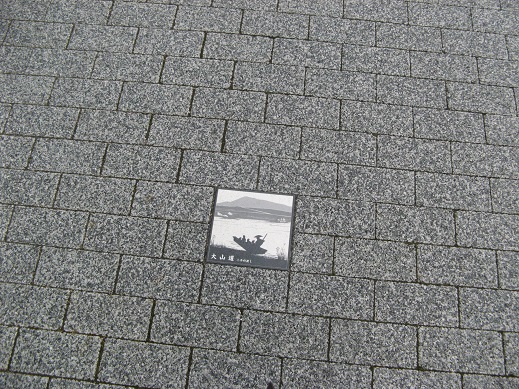 | 交通広場の歩道に大山道のパネルが複数埋め込まれています。 ここを通る人は多いですが、どのくらいの人が気づいているのでしょうか。 |