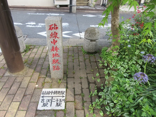 | (4)玉電用賀駅跡碑に寄り道します。 | |
