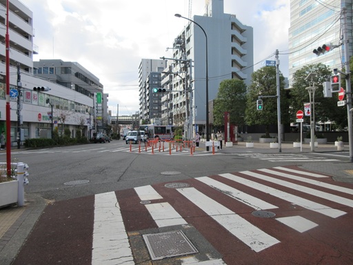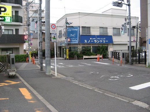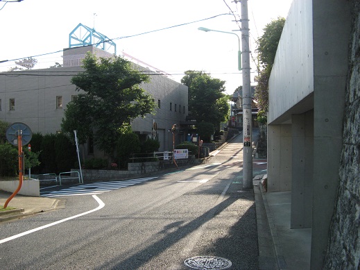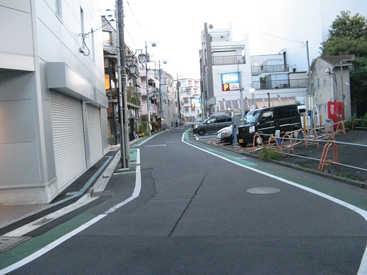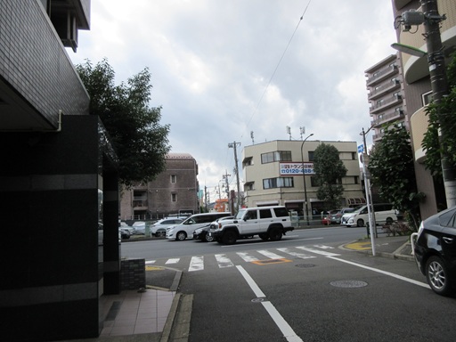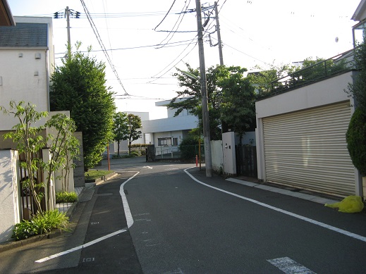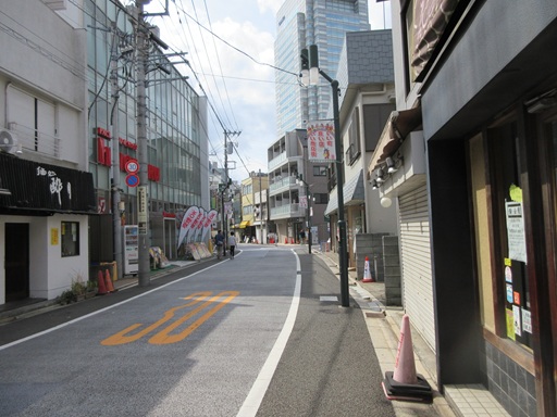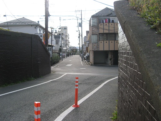 | 左折したところ この先を右折します。左は東急二子玉川駅です。 |