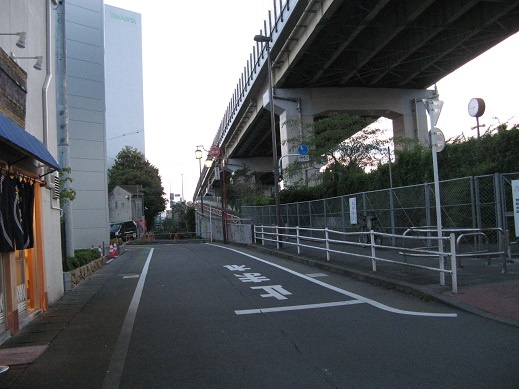 | 上は国道246号新二子橋に接続する玉川高架橋です。 大山街道は斜め右前に進んでいましたが、現在の道は直角に右折します。 |