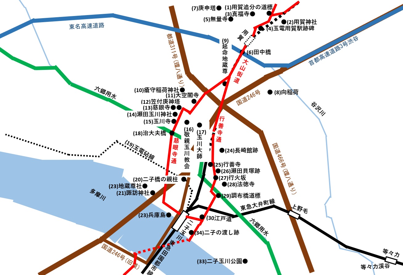 江戸・赤坂からの大山街道を歩いてみました。 今回は、用賀から二子の渡しです。 |