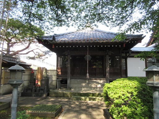 | 観音堂(大日堂) 行基(668-749)の作と言われている用賀観音の十一面観音像が祀られています。 品川の漁師の網に掛かった観音を用賀の住民が譲り受けて自宅で祀っていたところ、夢の中で観音から無量寺に安置するようにとのお告げがあった、という説もあります。 |