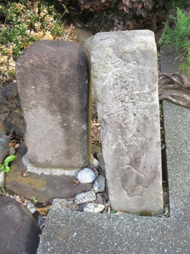 | 1743年(寛保3年)造立の「南無十一面観世音菩薩」と刻まれた写経塔と「観音堂入口」の石碑 | |