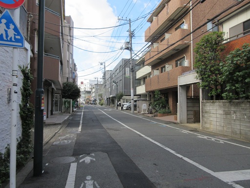 | 右折したところ 左は用賀駅北口広場です。道なりに右折します。 |