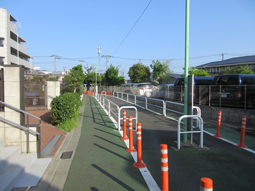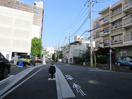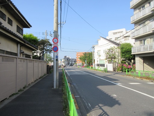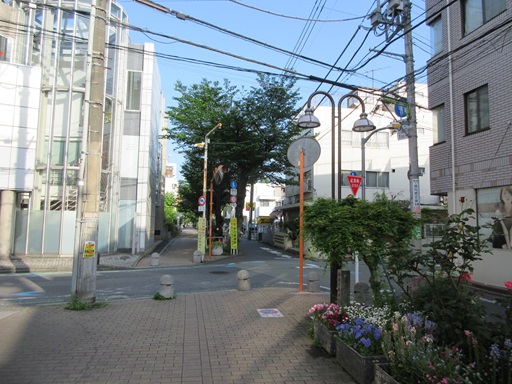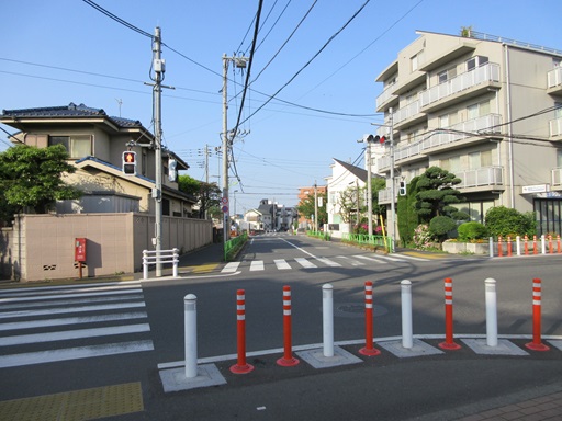 | 横切っている谷川緑道(遊歩道)で右側の車道を通り抜けできなくなっています。 | |