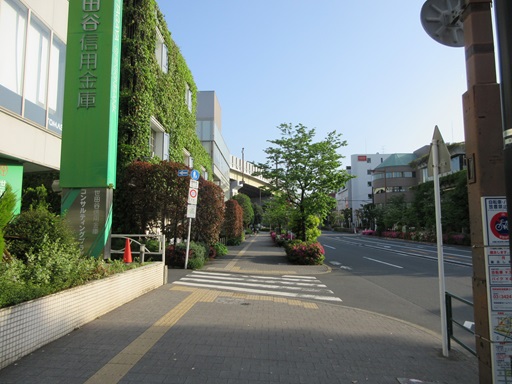 | 交差点右先の世田谷信用金庫の先を左折して細い道に入ります。 | |