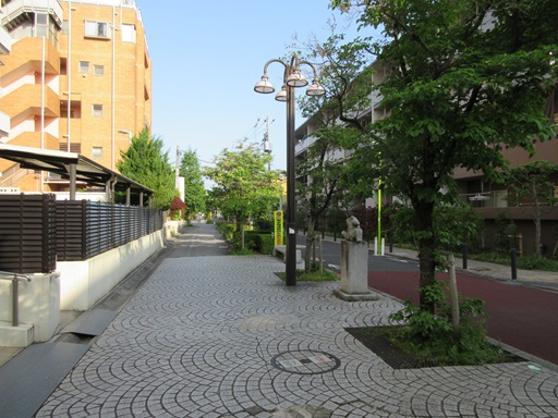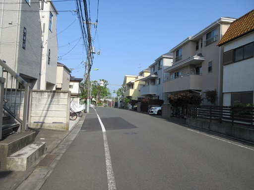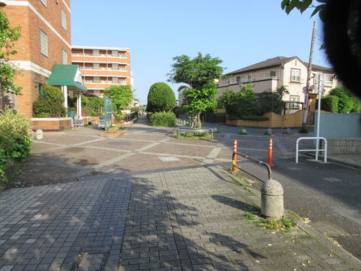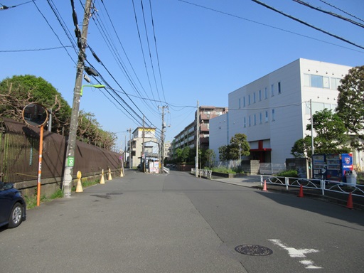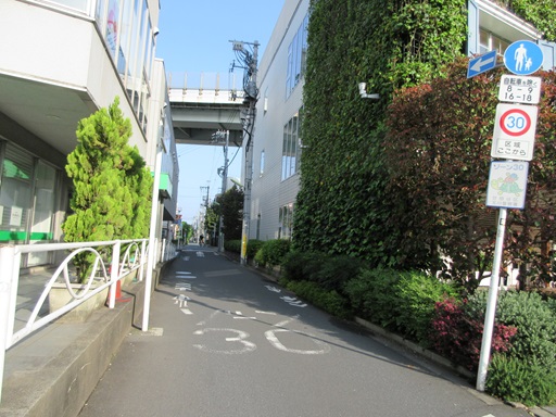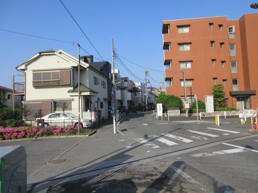 | 右折したところ 右の建物の手前側が曲面なのは砧線跡地利用のせいでしょうか。 |