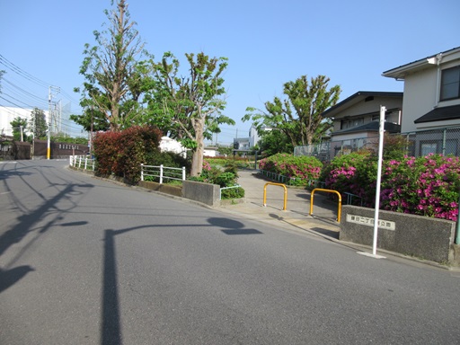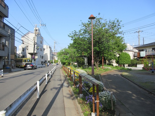 | 道路は右カーブしますが、砧線は正面の鎌田二丁目南公園に向かっていました。 | |