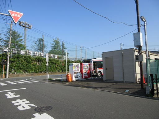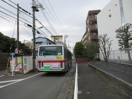 この路線バスが先ほどの砧線跡の道路を走ってきました。砧線転用道理は一方通行なので復路は別ルートを走ります。 |
